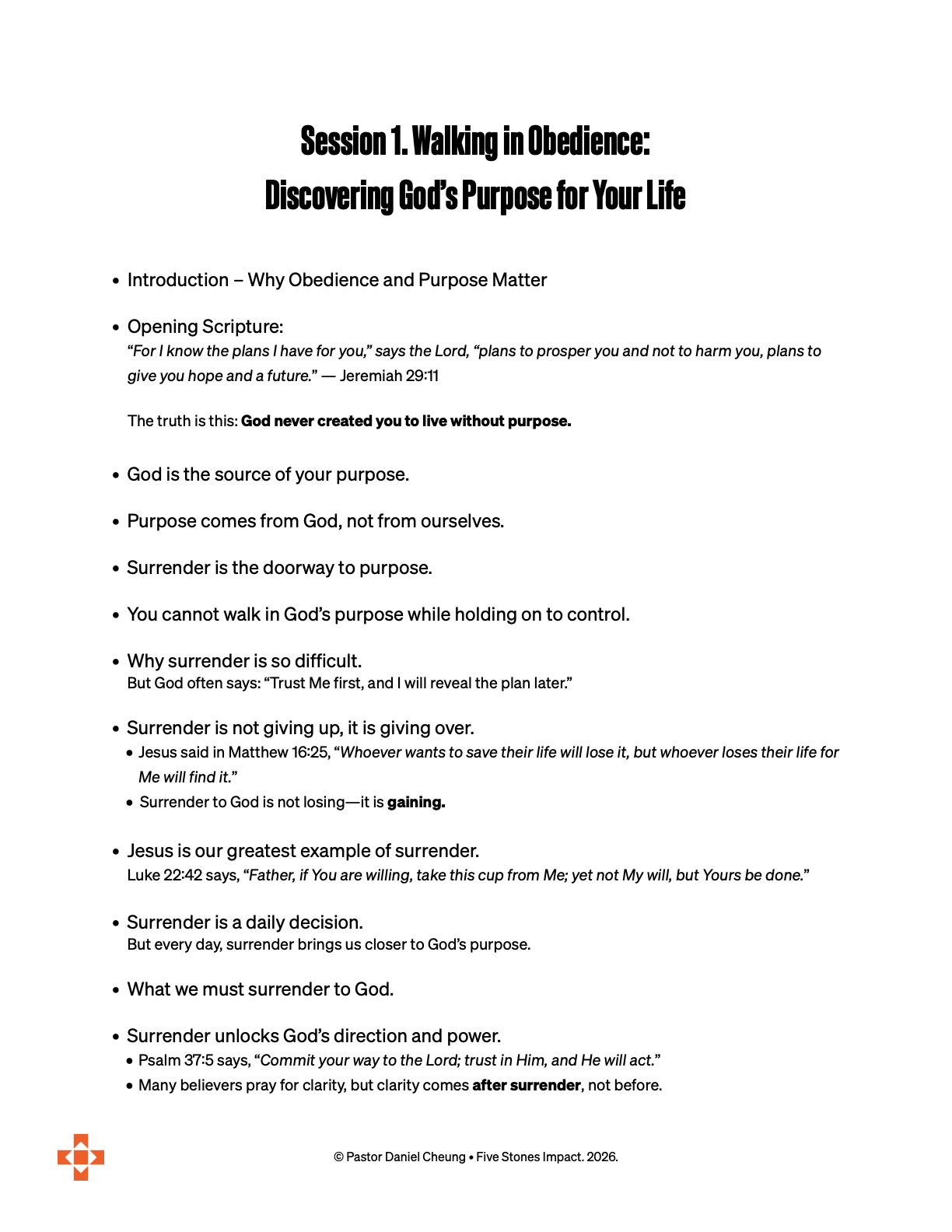 In this course, we discuss how a life of faithful obedience to God is the key to unlocking and satisfying the deepest longings of our hearts. By cultivating a dwelling place for the presence of God in our lives, we will find that all of our searching leads us back to our true home and rest—God Himself.